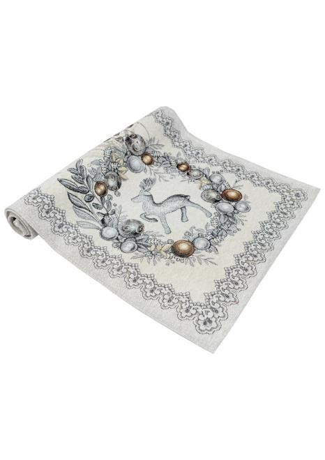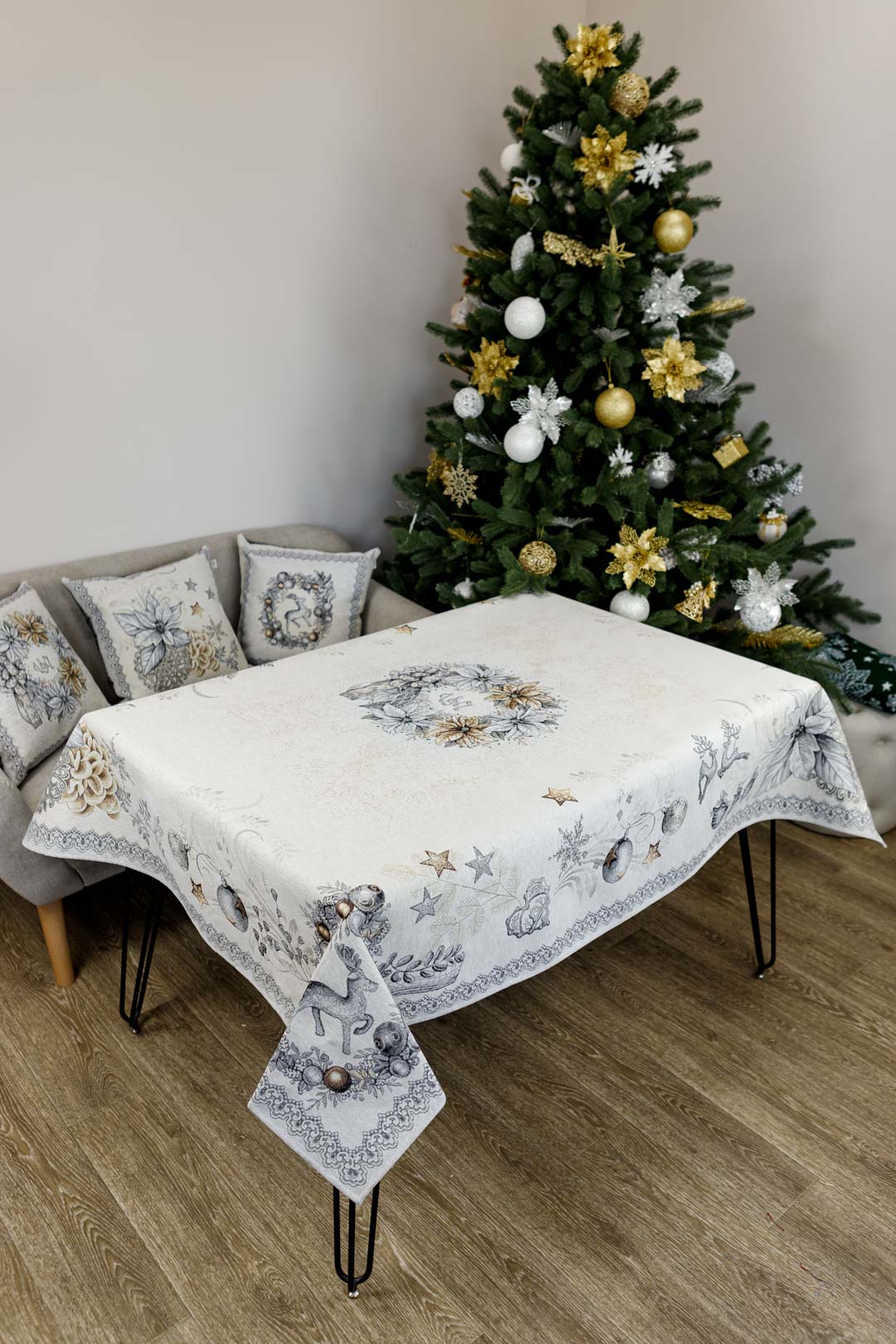 Silver Christmas Tapestry Textile Collection With Reindeers: tablecloths, table runners, placemats, pillowcases