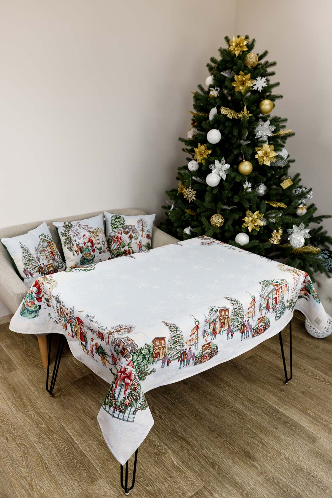White Christmas Tapestry Santa Claus: tablecloths, table runners, placemats, pillowcases