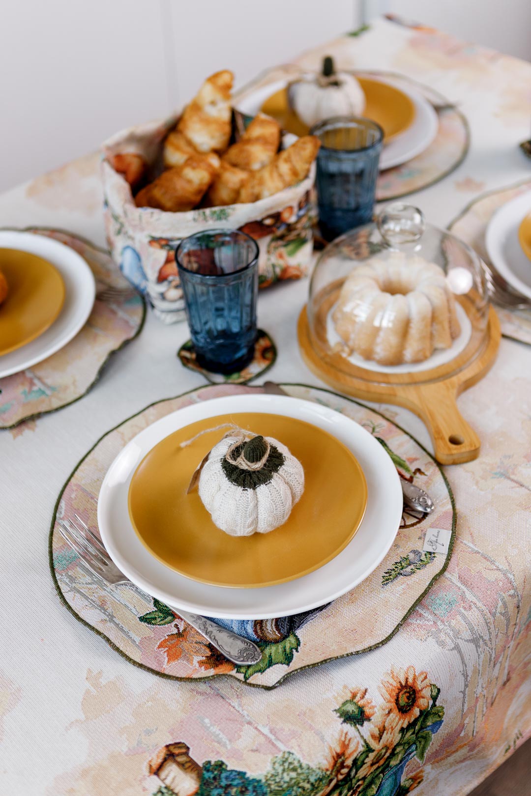 Round autumn gnome tapestry placemats set will be a great housewarming Halloween gift.