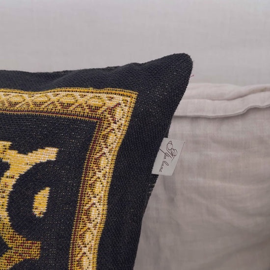 Baroque Style Tapestry Pillowcase With The Head Pattern | Black Cotton Pillow Cover With Gold Baroque Scroll Work Pattern, Luxury Home Decor