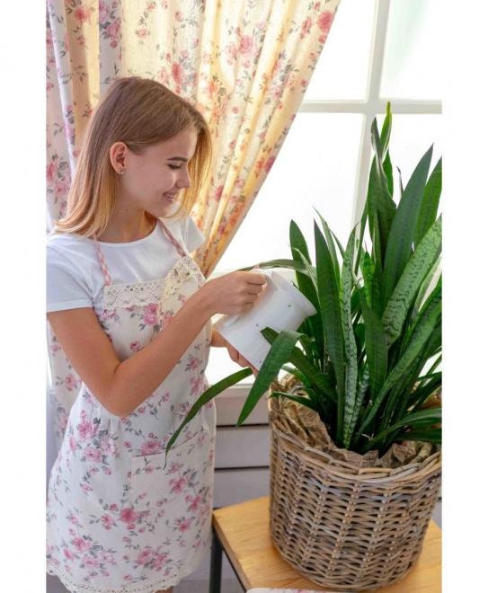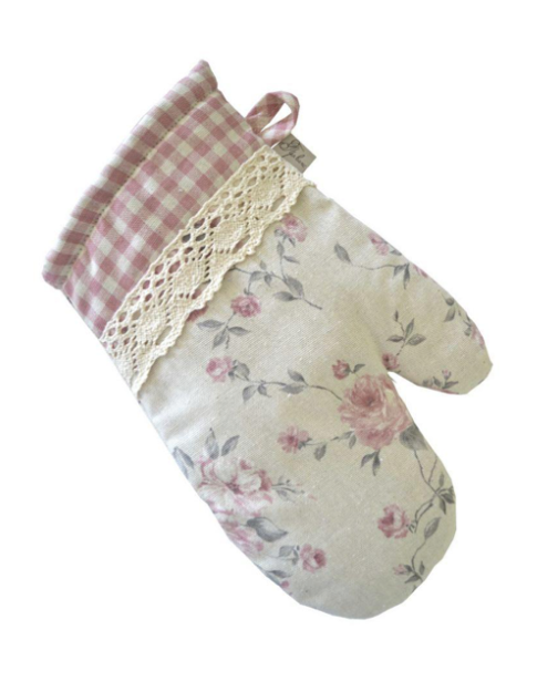 English roses cotton kitchen apron, potholder and oven mitten with lace will be a great housewarming present.