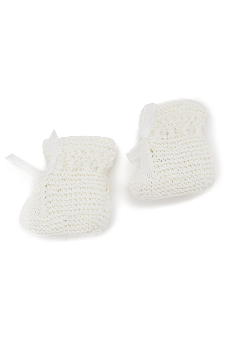 2. knitted bodysuit and booties with a beautiful ribbon.