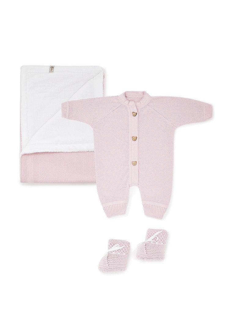 Pink Knitted Baby Set Of A Blanket, Bodysuit, Booties | Beautiful, Versatile Set For Newborns, Infants, Present For Baby Shower