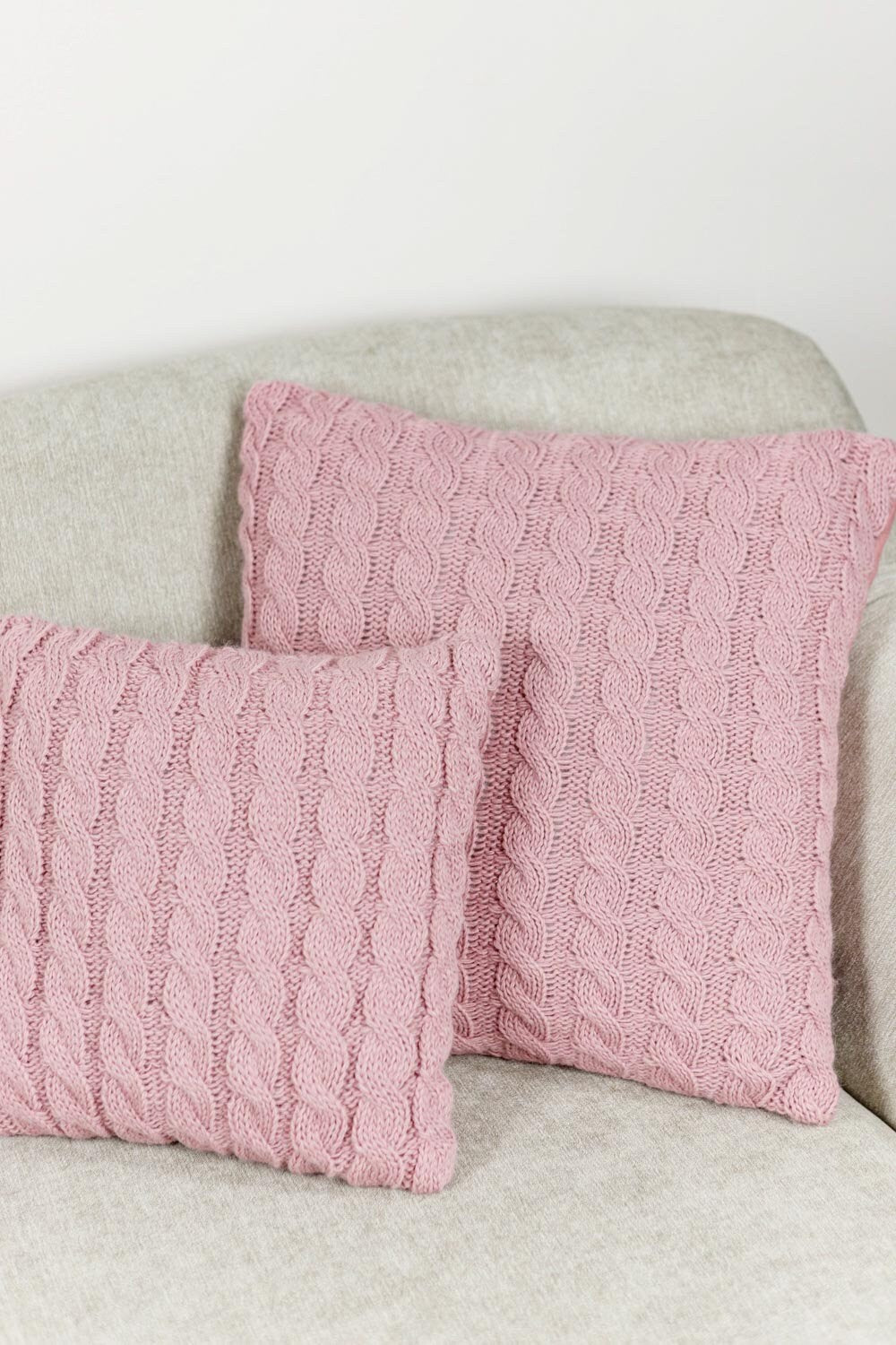 Pink Cable Knitted Pillowcase | Decorative Pillow Cover, Festive Home Decor, Living Room, Bedroom Textile, Housewarming Present Idea