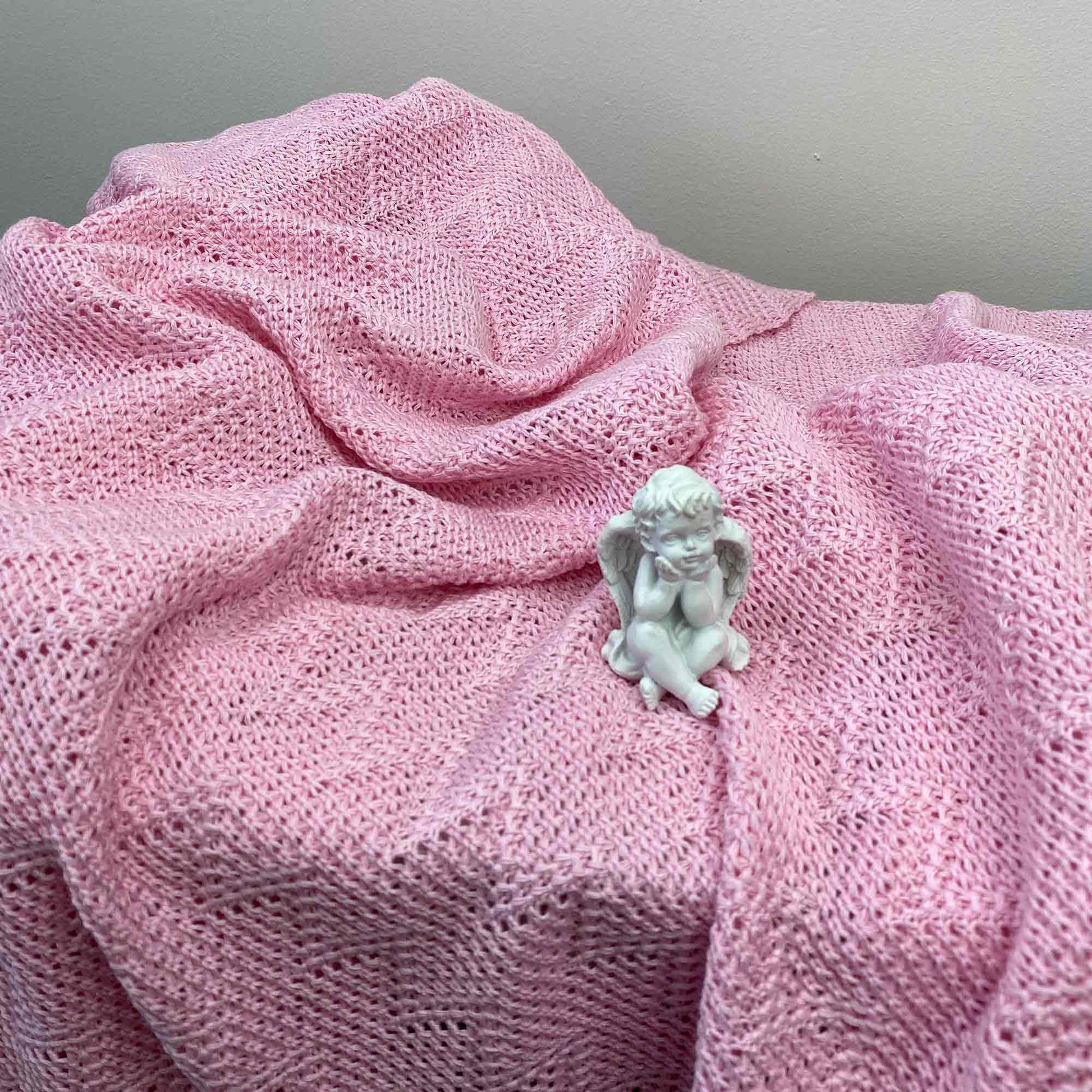 Pink openwork knitted blanket will be a great housewarming present idea.