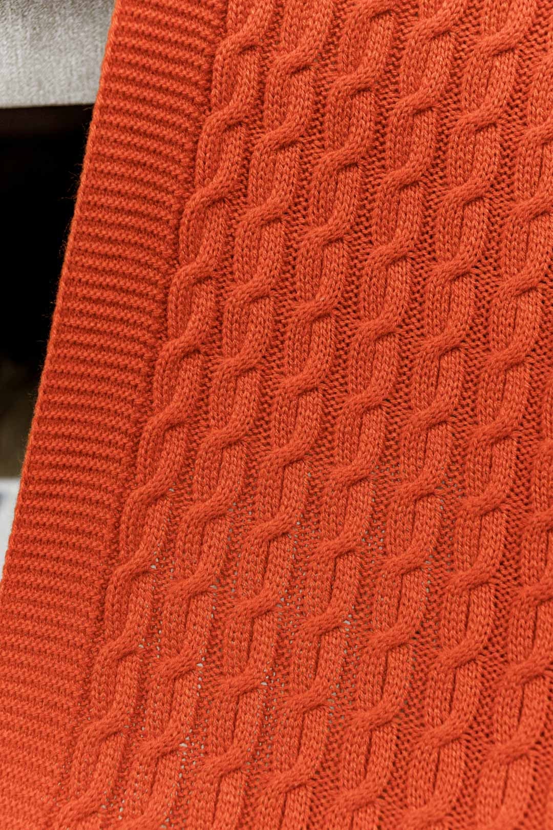 Orange cable knitted blanket will be a great Thanksgiving, housewarming present.