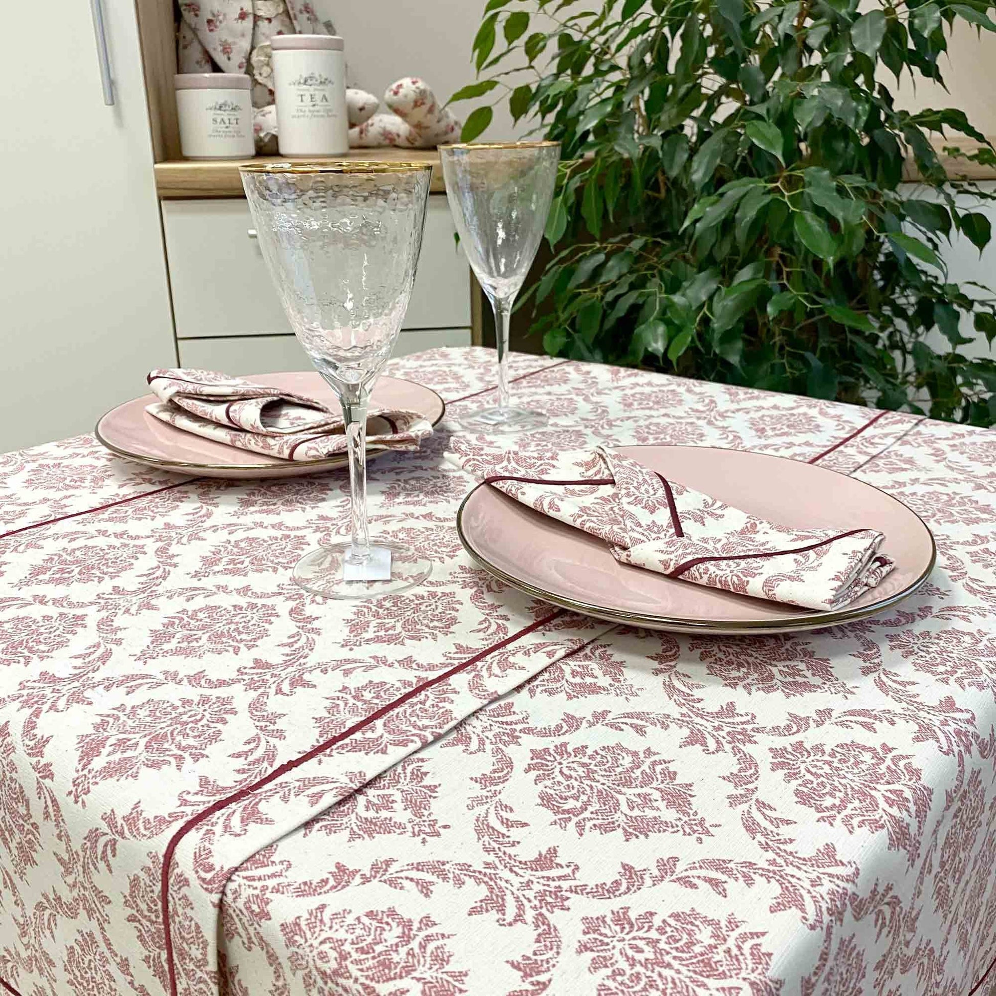 Red French Monogram Tablecloth | Chic Kitchen, Living Room Luxury Textile, Housewarming Gift