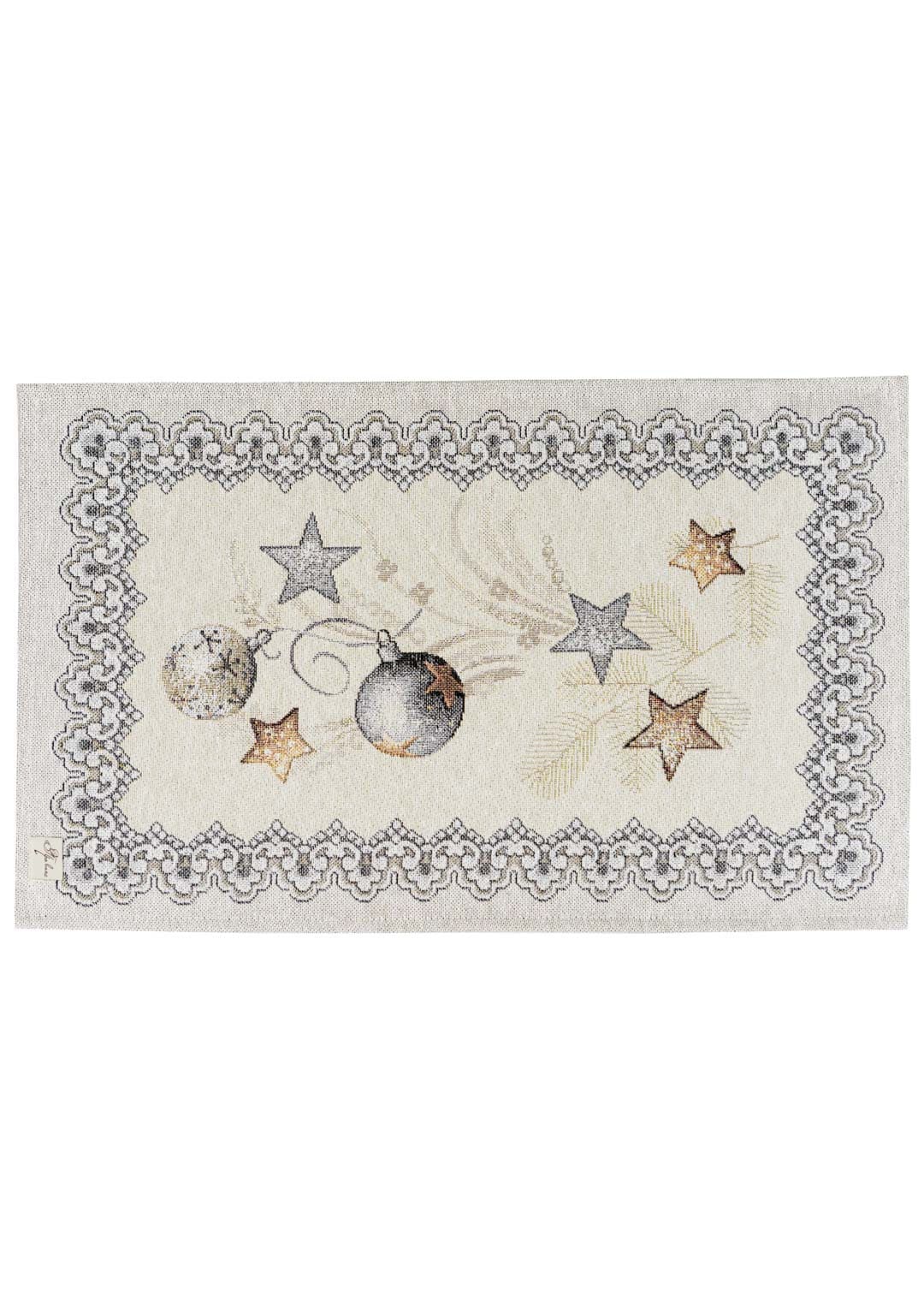 Silver tapestry placemat with Christmas decor pattern will be a great Christmas housewarming gift Idea.