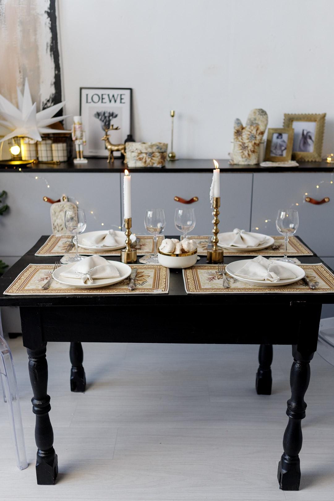 Set of Four Gold Christmas Tapestry Velour Placemats With Poinsettia Flower Pattern | Festive New Year Textile Set, Housewarming Gift