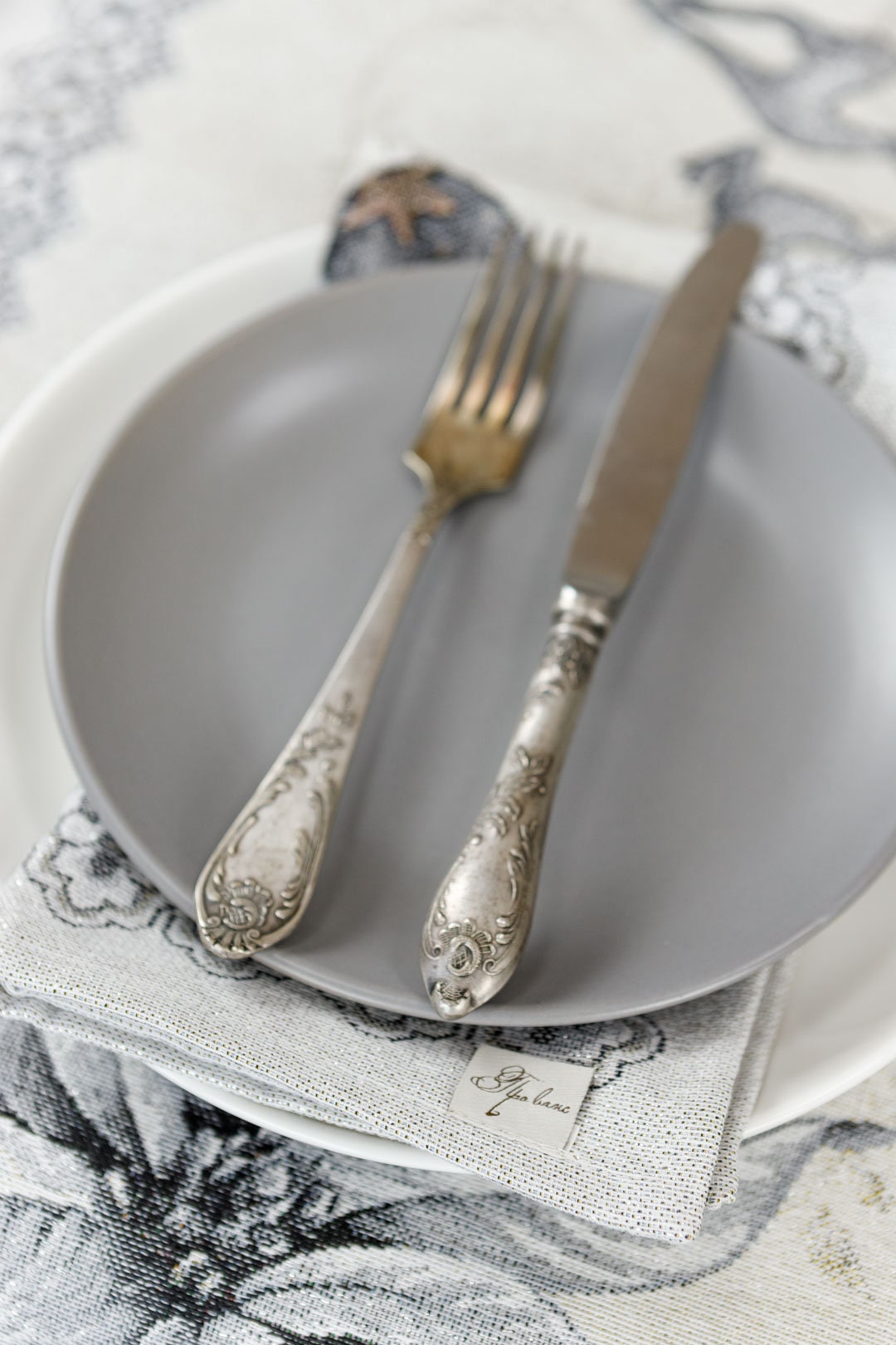 Silver tapestry table runner with reindeers and poinsettia flower pattern will be a great Christmas housewarming gift Idea.