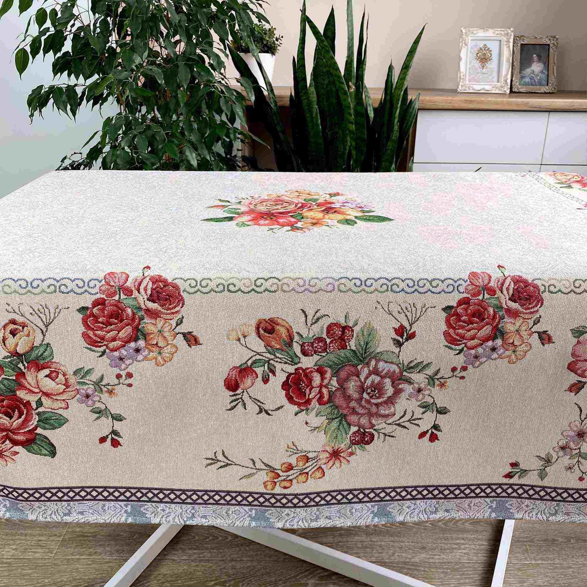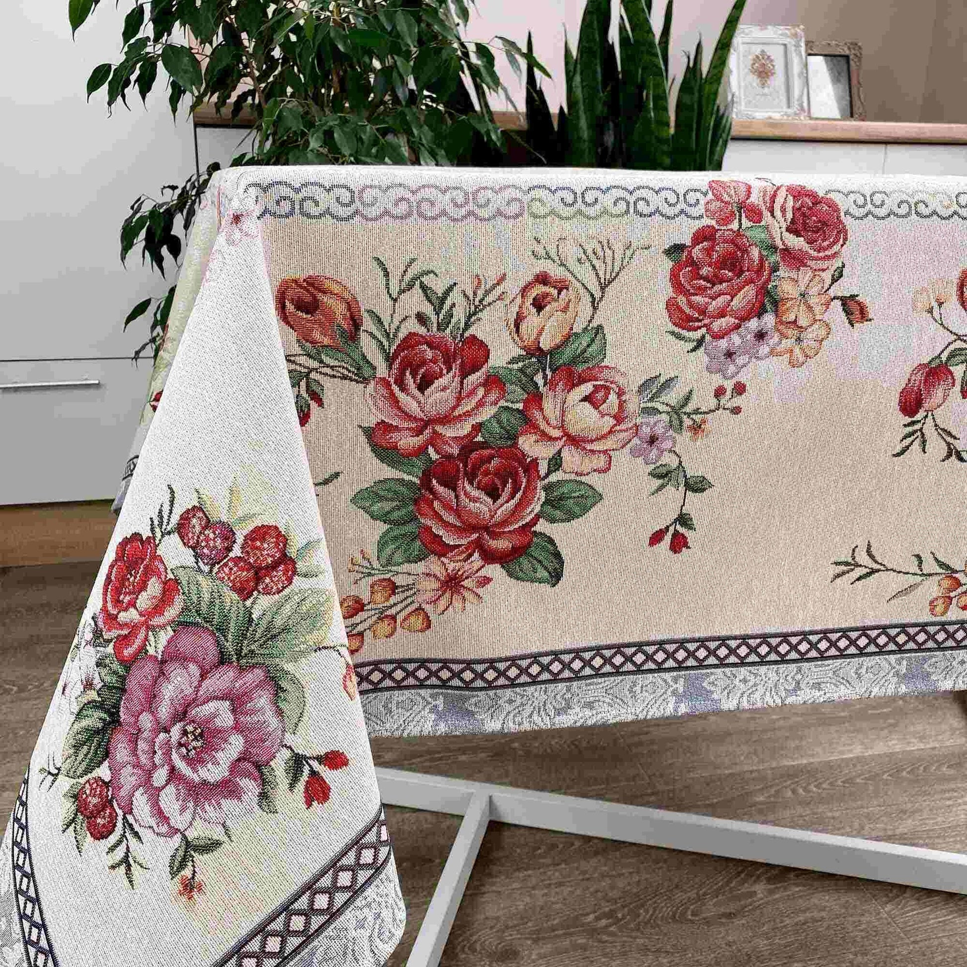 Silver Tapestry Tablecloth With Roses Pattern | Kitchen And Living Room Textile Set, Festive Table Linens, Present Idea.