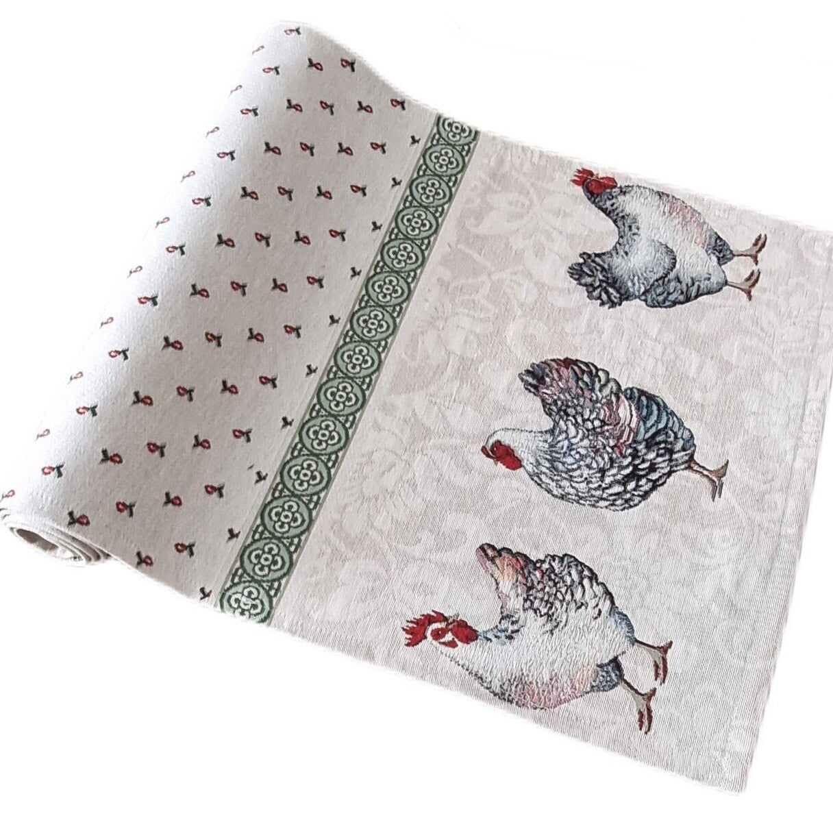 Tapestry chicken table runner will be a great home decoration.