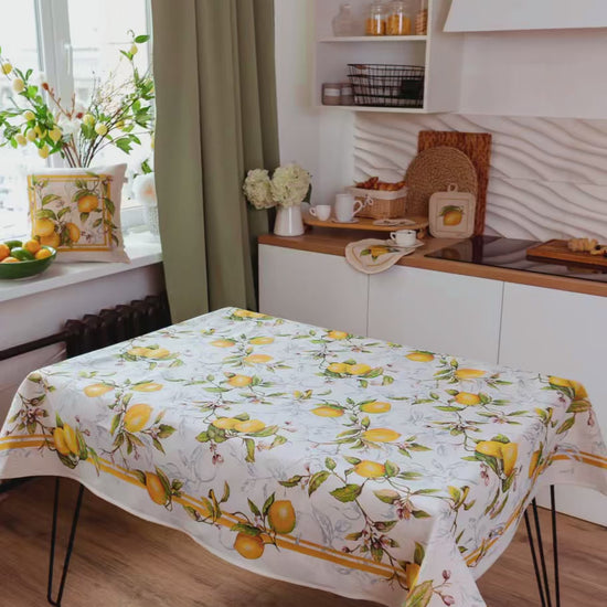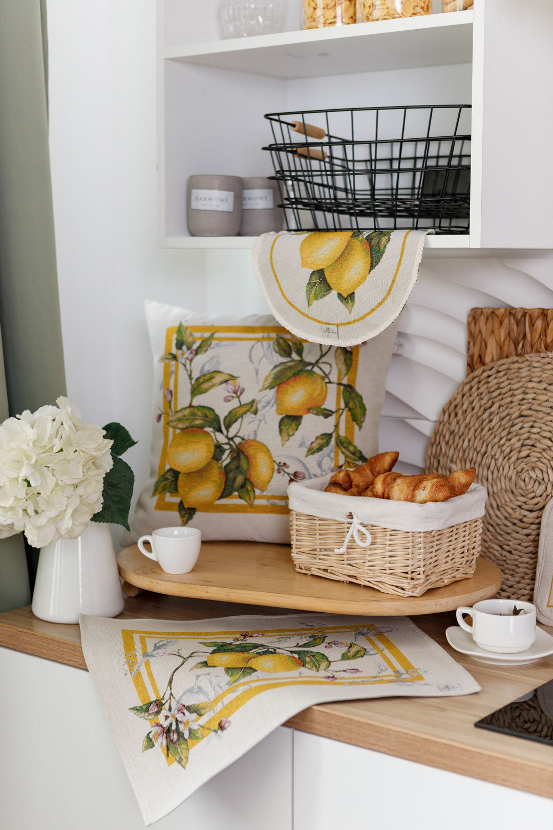 Tapestry Lemon Print Pillowcase | Mediterranean Kitchen Decor, Summer Citrus Table Cover, Yellow Fruit Botanical Linen Look Textile