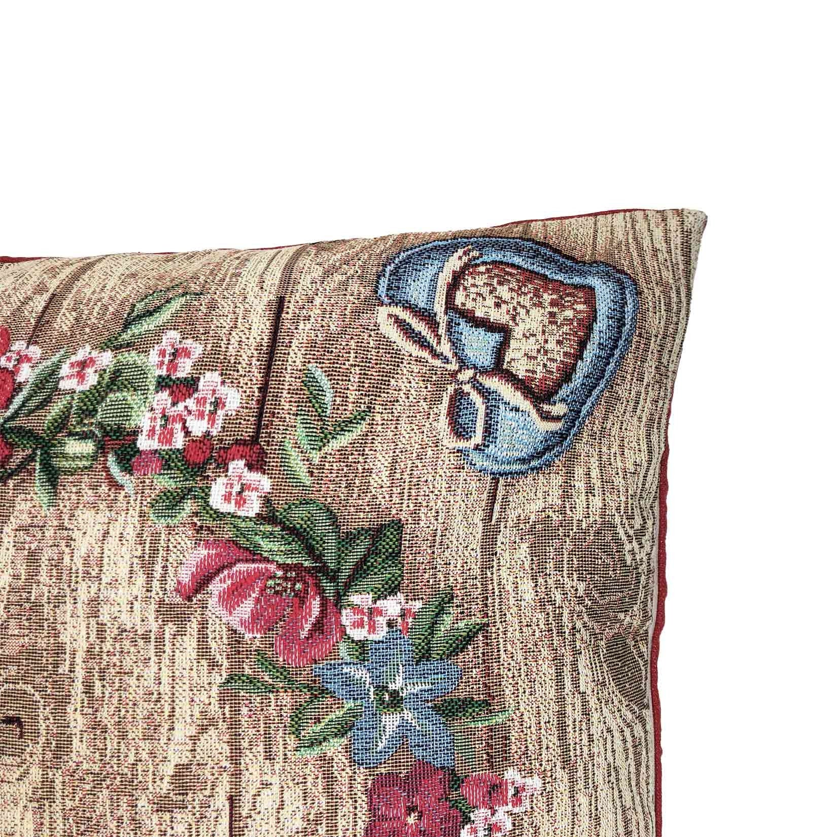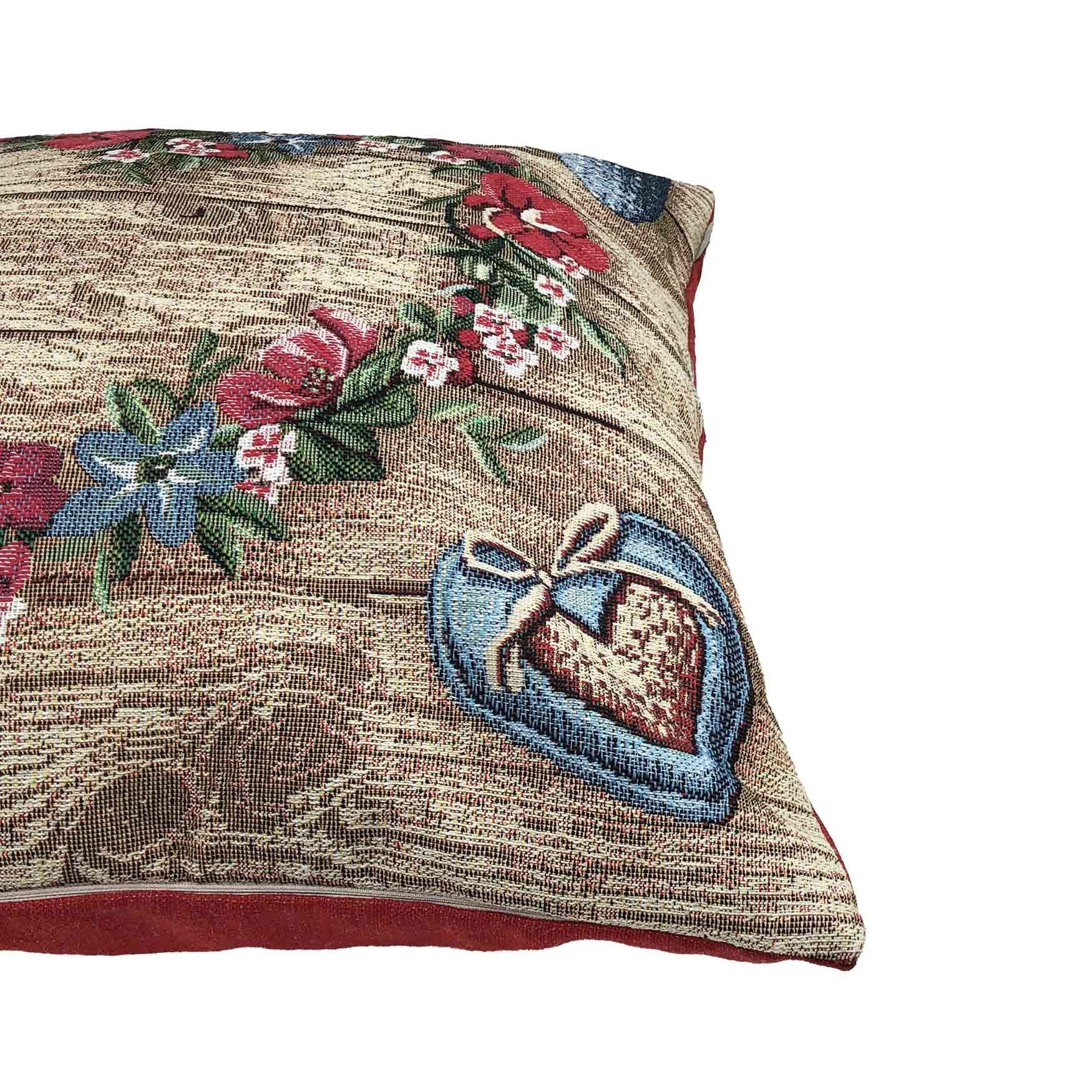 Tapestry pillowcase with heart wreath of flowers and wooden print is made of using Spanish fabric, of excellent quality.