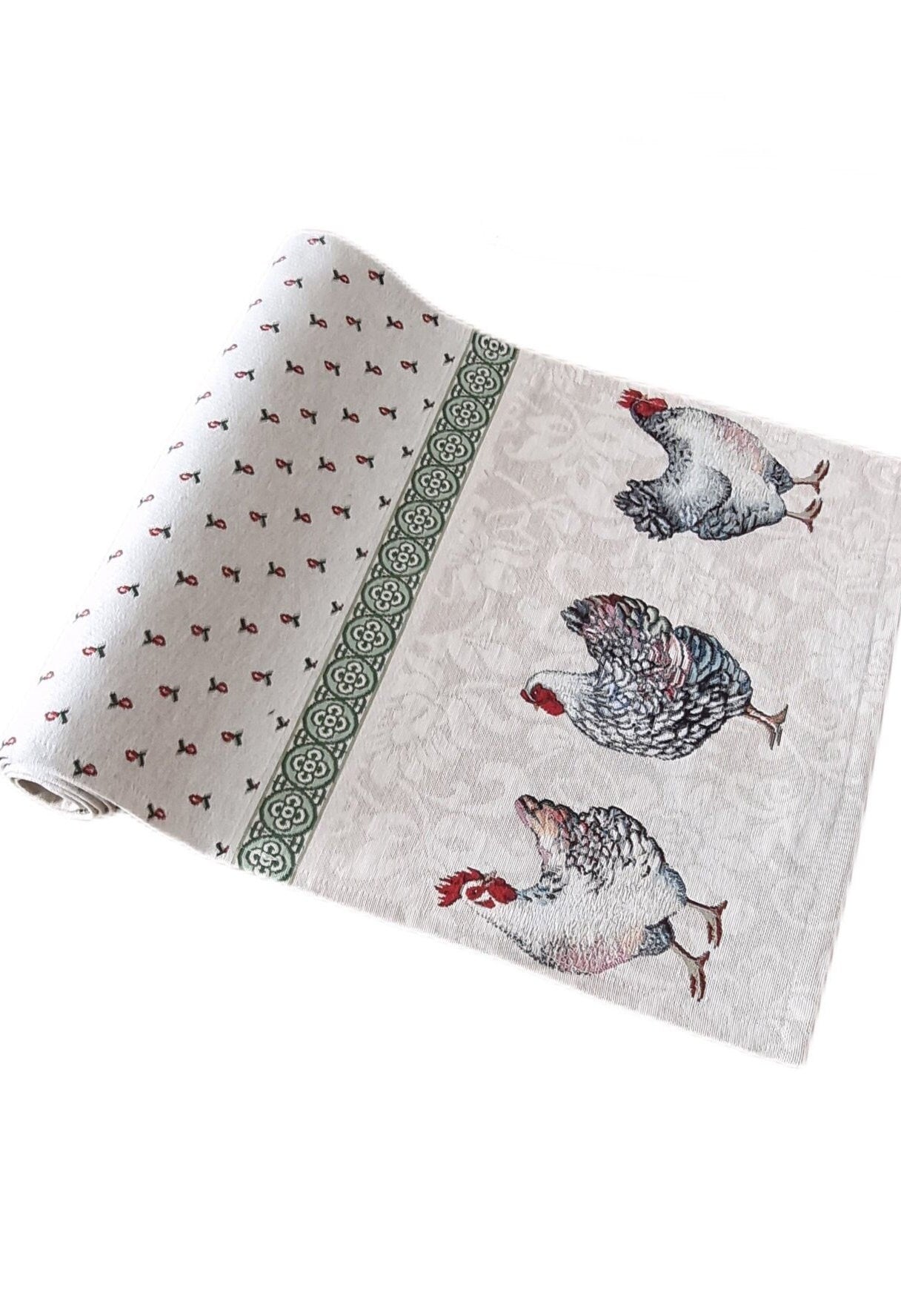 The napkin with chickens pattern is made of Spanish fabric and will create warm, festive atmosphere in a living room or a kitchen, and will definitely stand out.