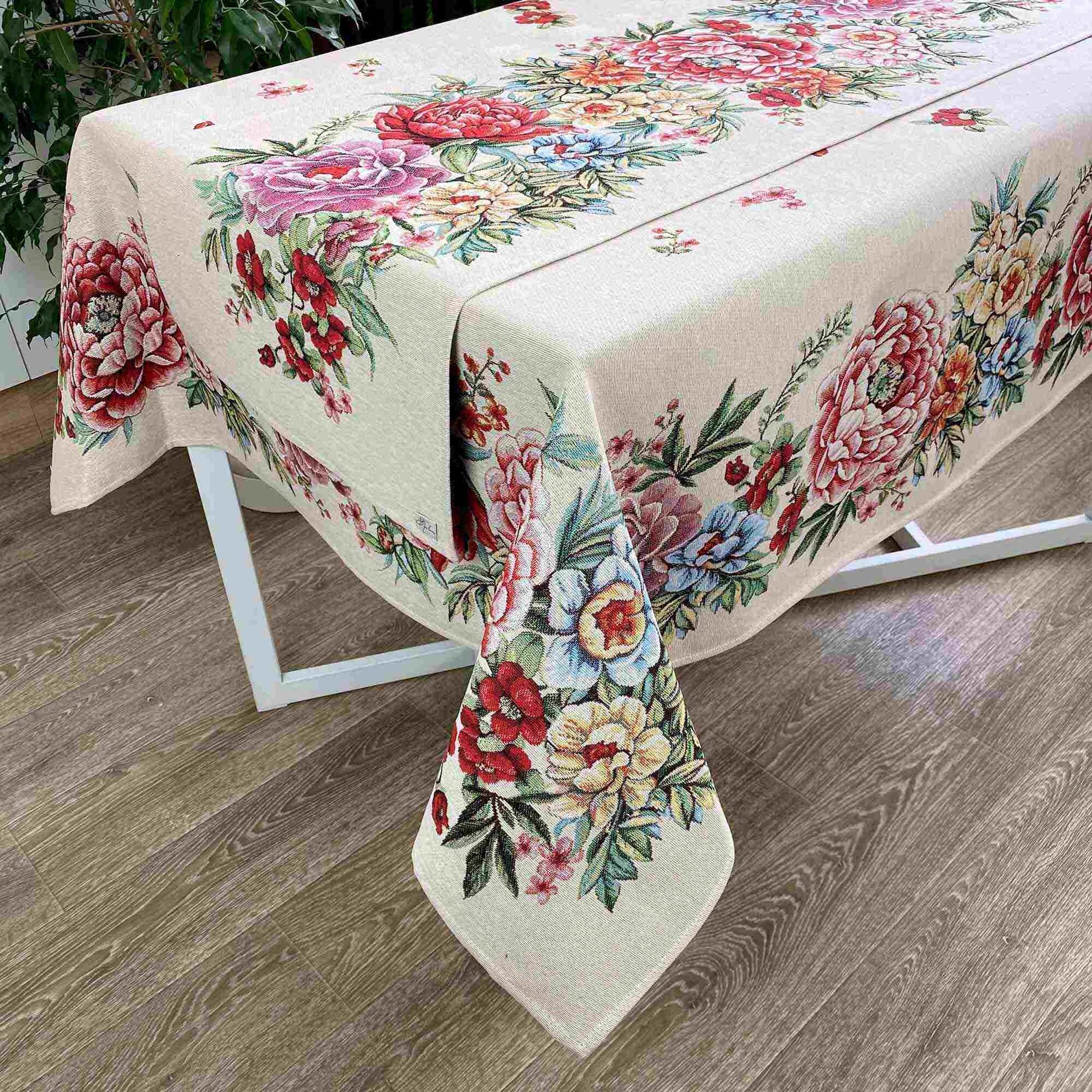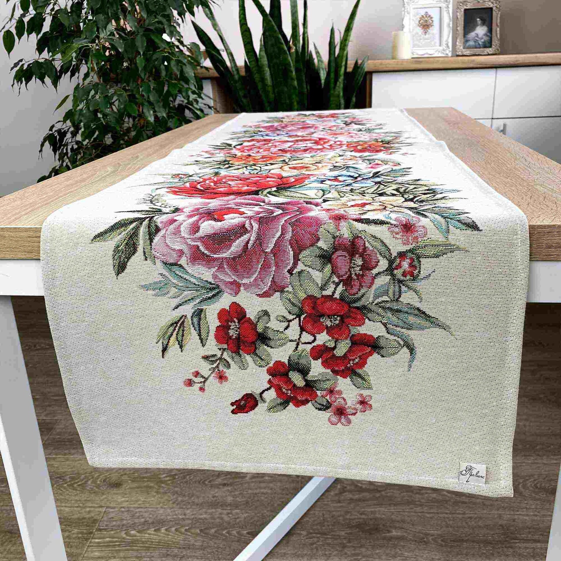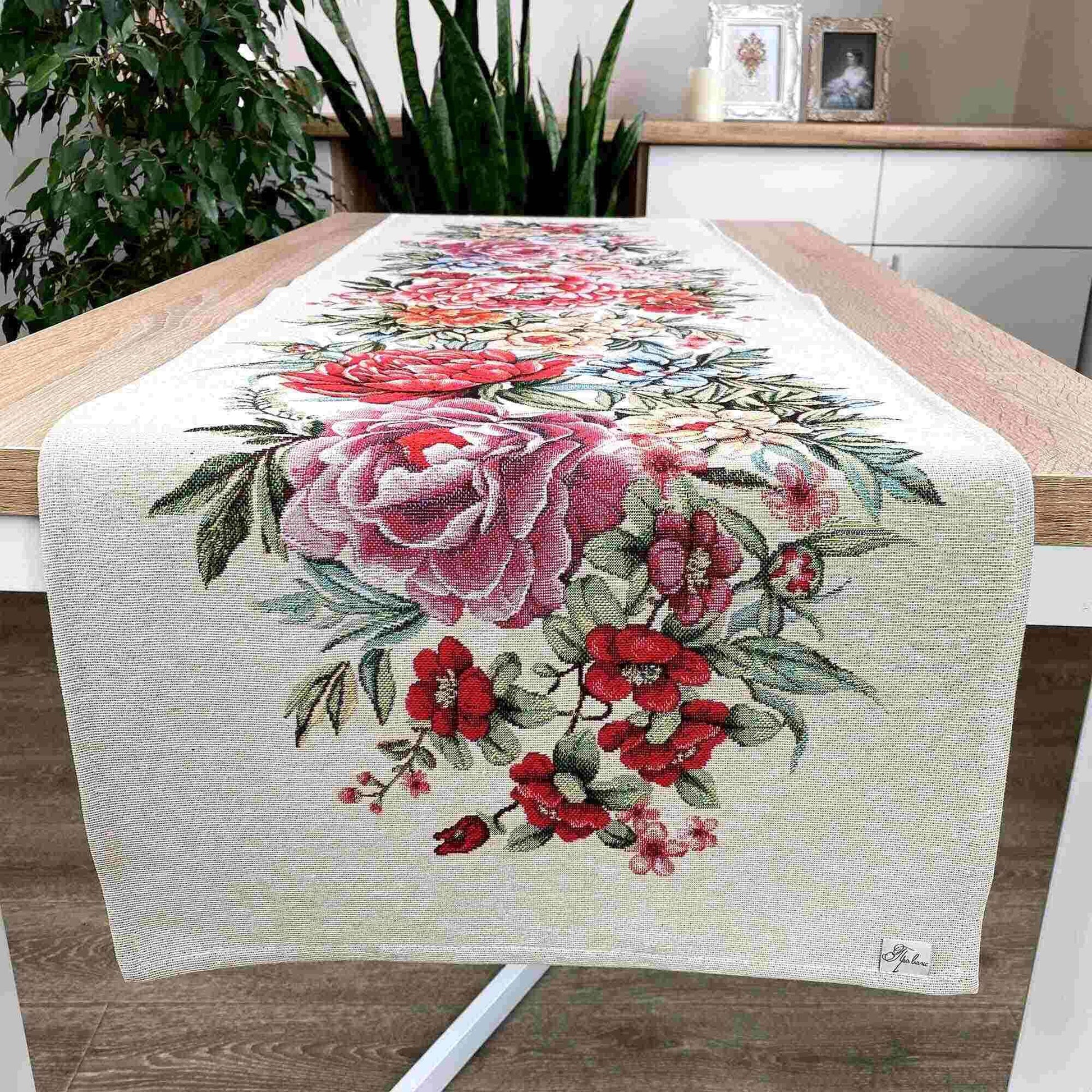 Tapestry Table Runner With Big Flowers Pattern | Floral Festive Kitchen, Living Room Textile, Friends And Family Gift Idea