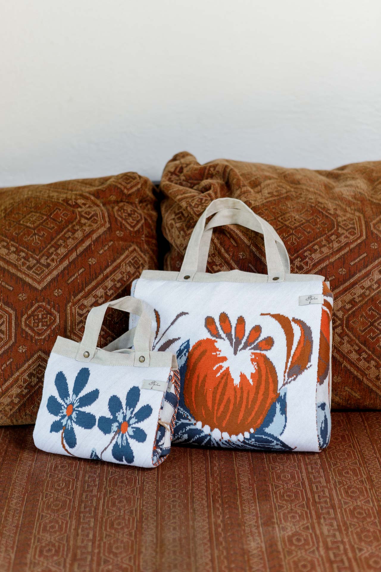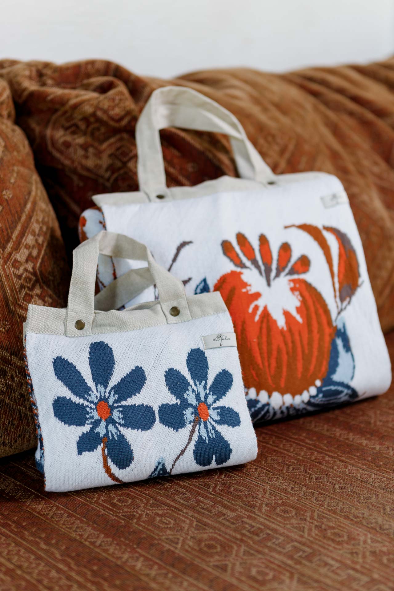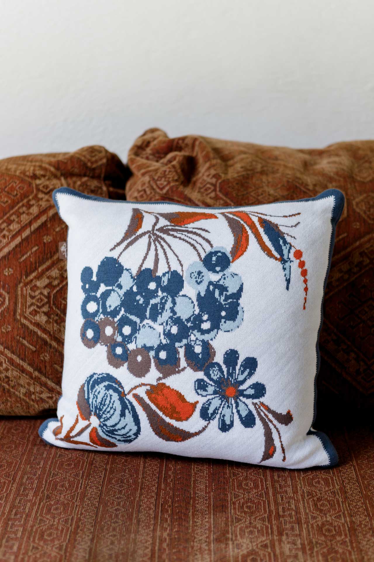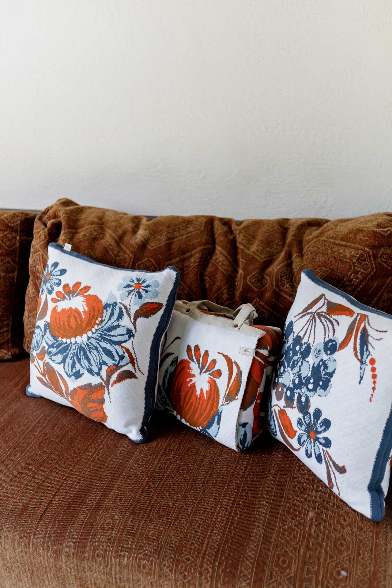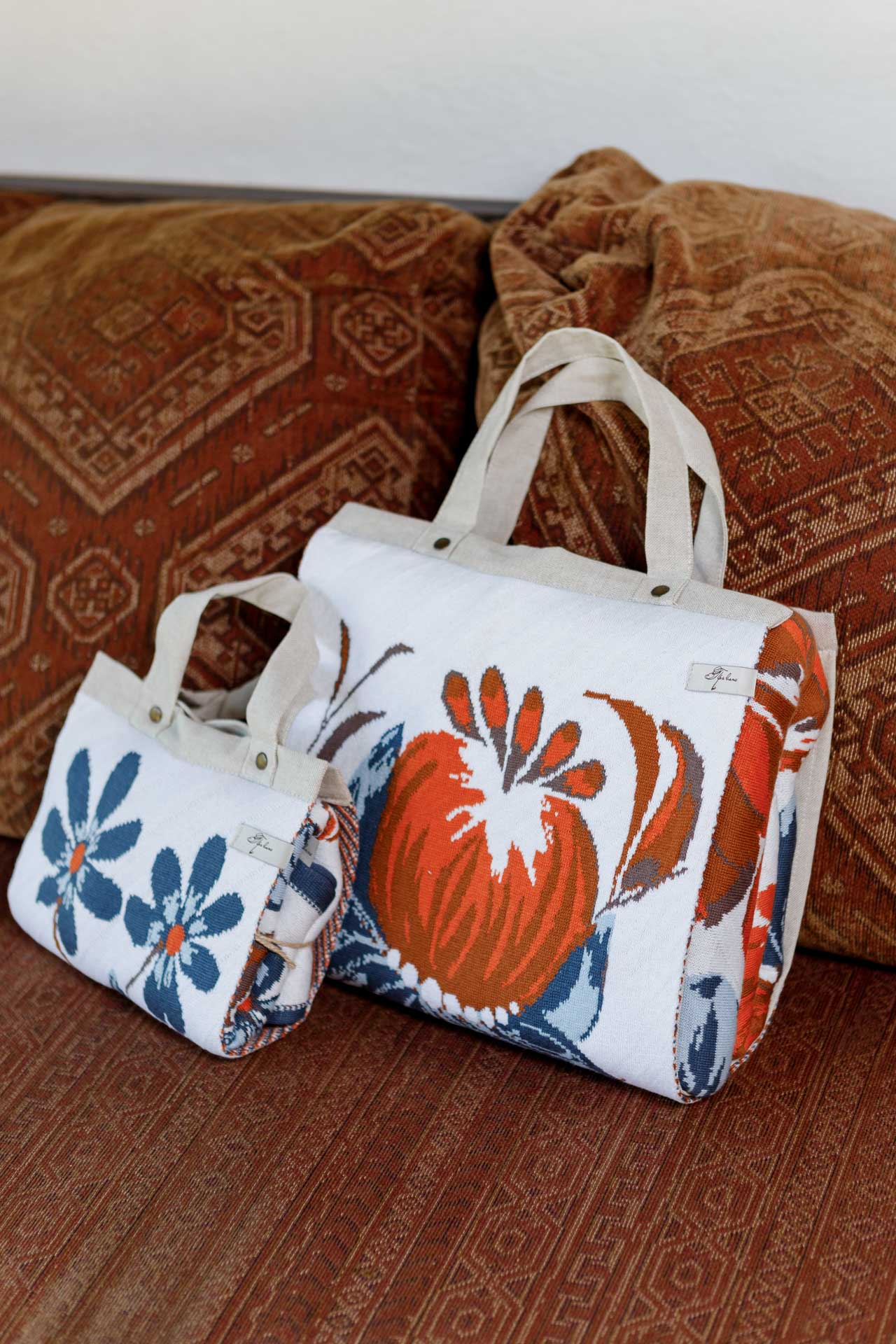 Ukrainian Style Knitted Throw Blanket, Petrykivka Floral Motif, Sofa Cover, Rustic Farmhouse Home Decor, Pillowcases With Bedspread Set
