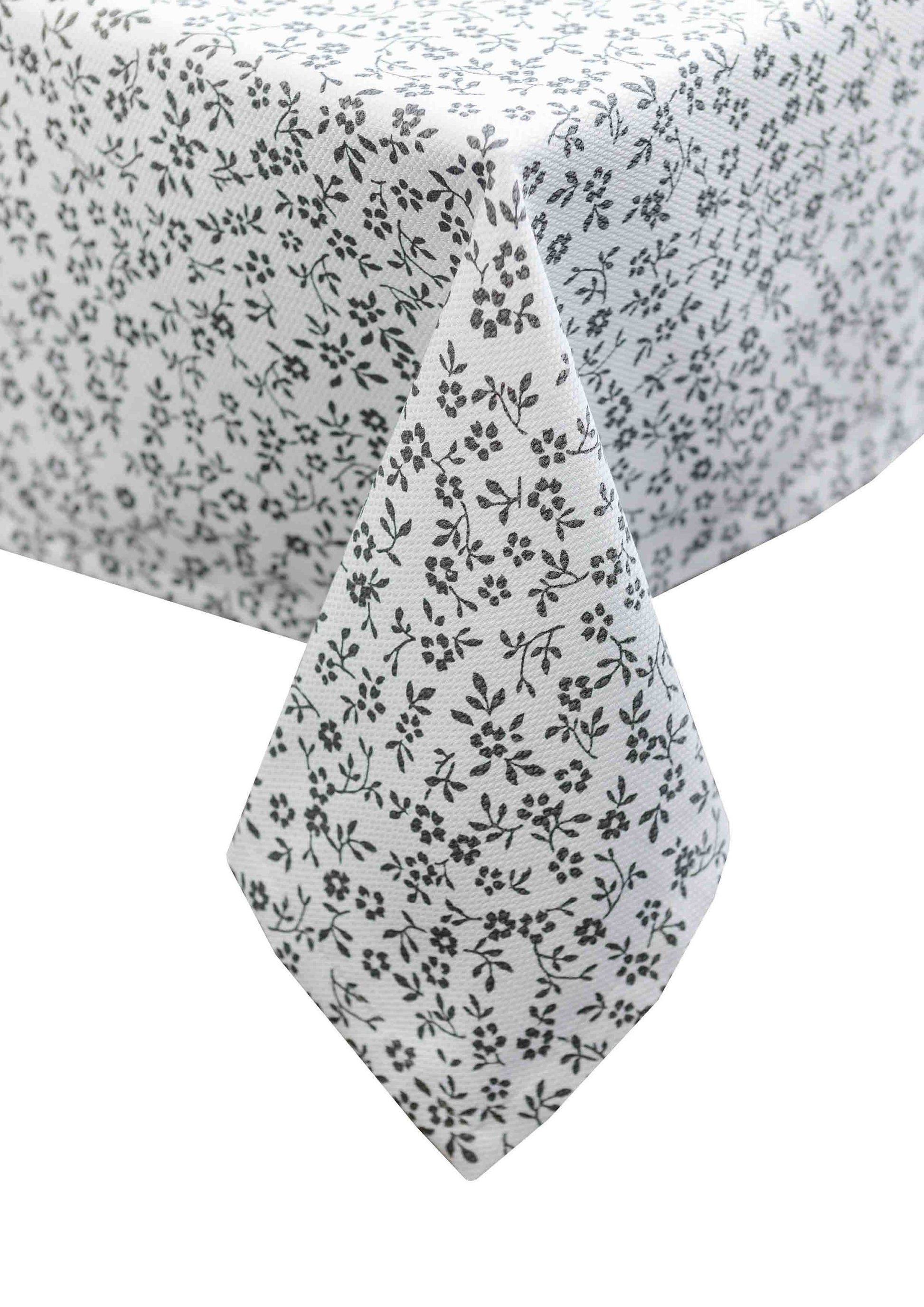 White Cotton Tablecloth With Grey Flowers Pattern | Floral Kitchen Table Cover, Housewarming Present Idea