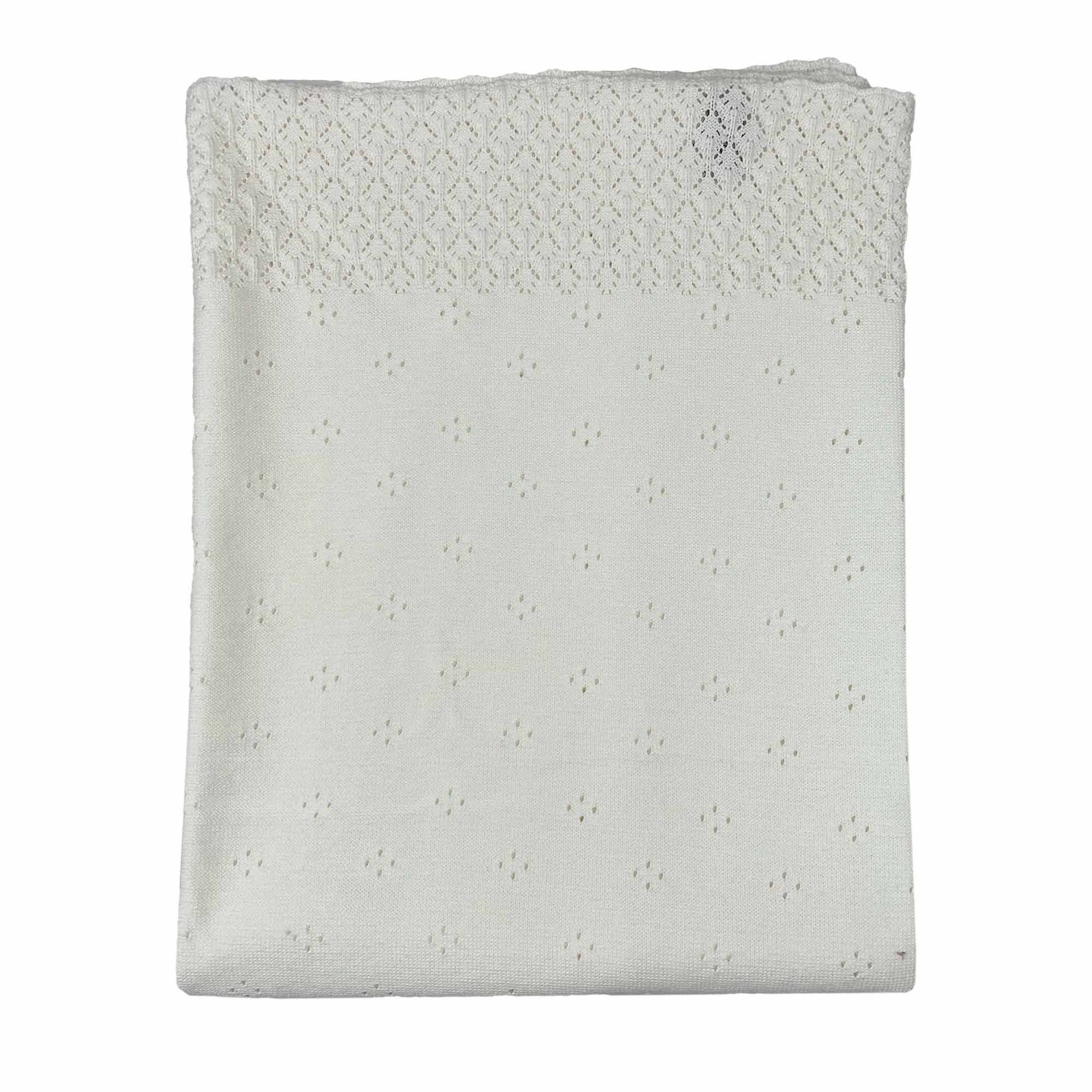 White knitted baby blanket, attribute for newborns will be a great present for the first birthday, baby shower. The blanket will be a wonderful gift for any celebration for kids. You can also take it with you y go outside or in the car. The blanket will be a wonderful gift for any celebration for kids.